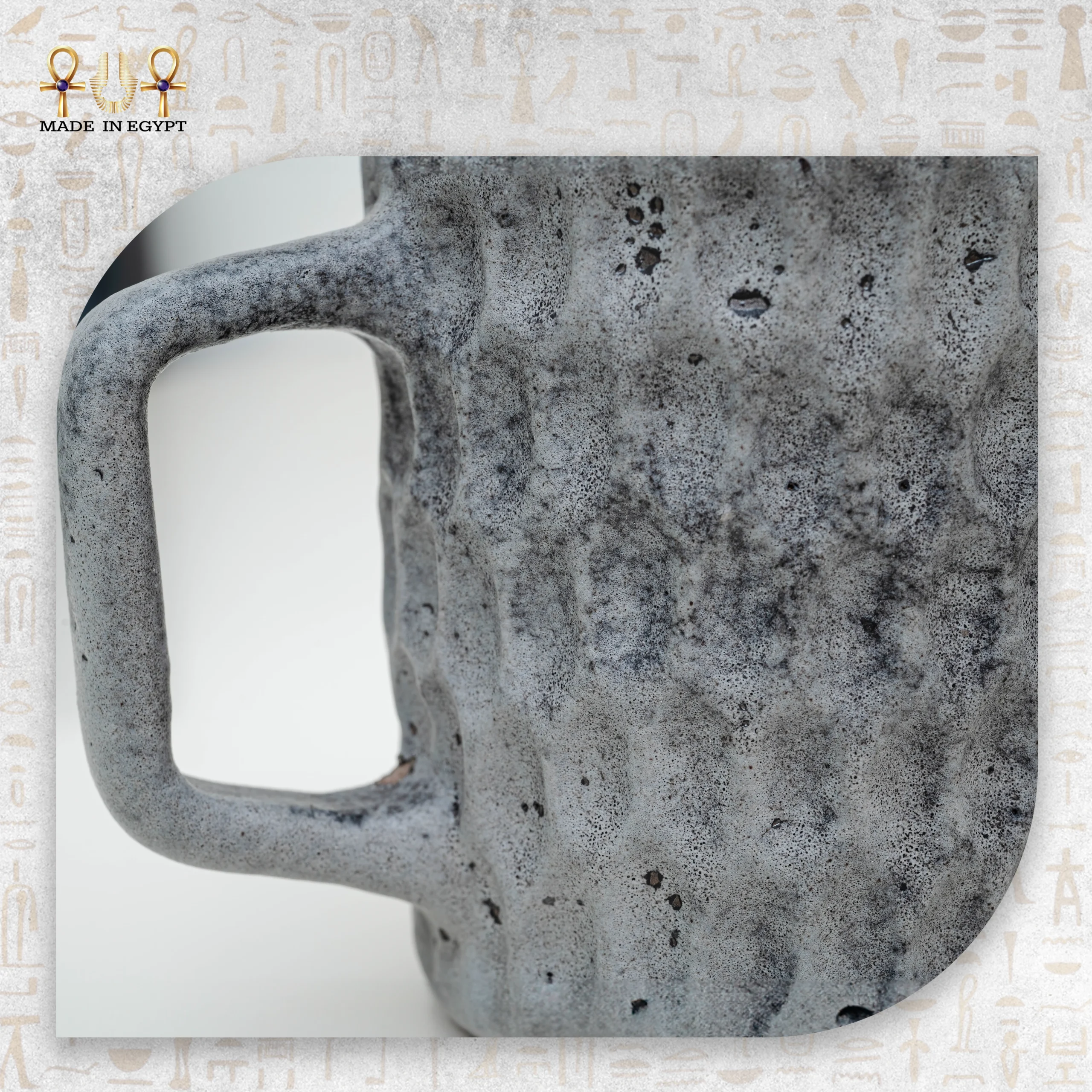 A handcrafted ceramic mug inspired by natural stone textures, offering a modern and artistic look.