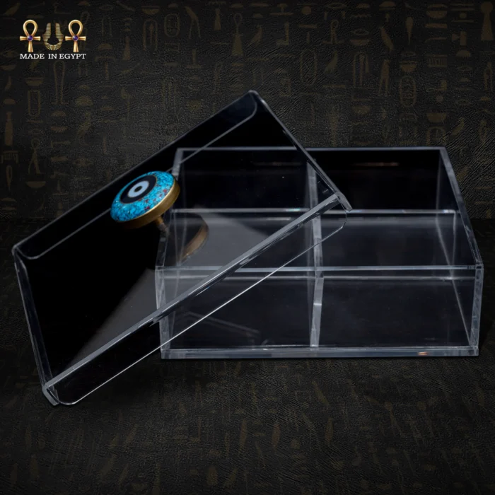Its transparent structure paired with a handcrafted symbolic knob reflects both refined taste and masterful Egyptian artistry.