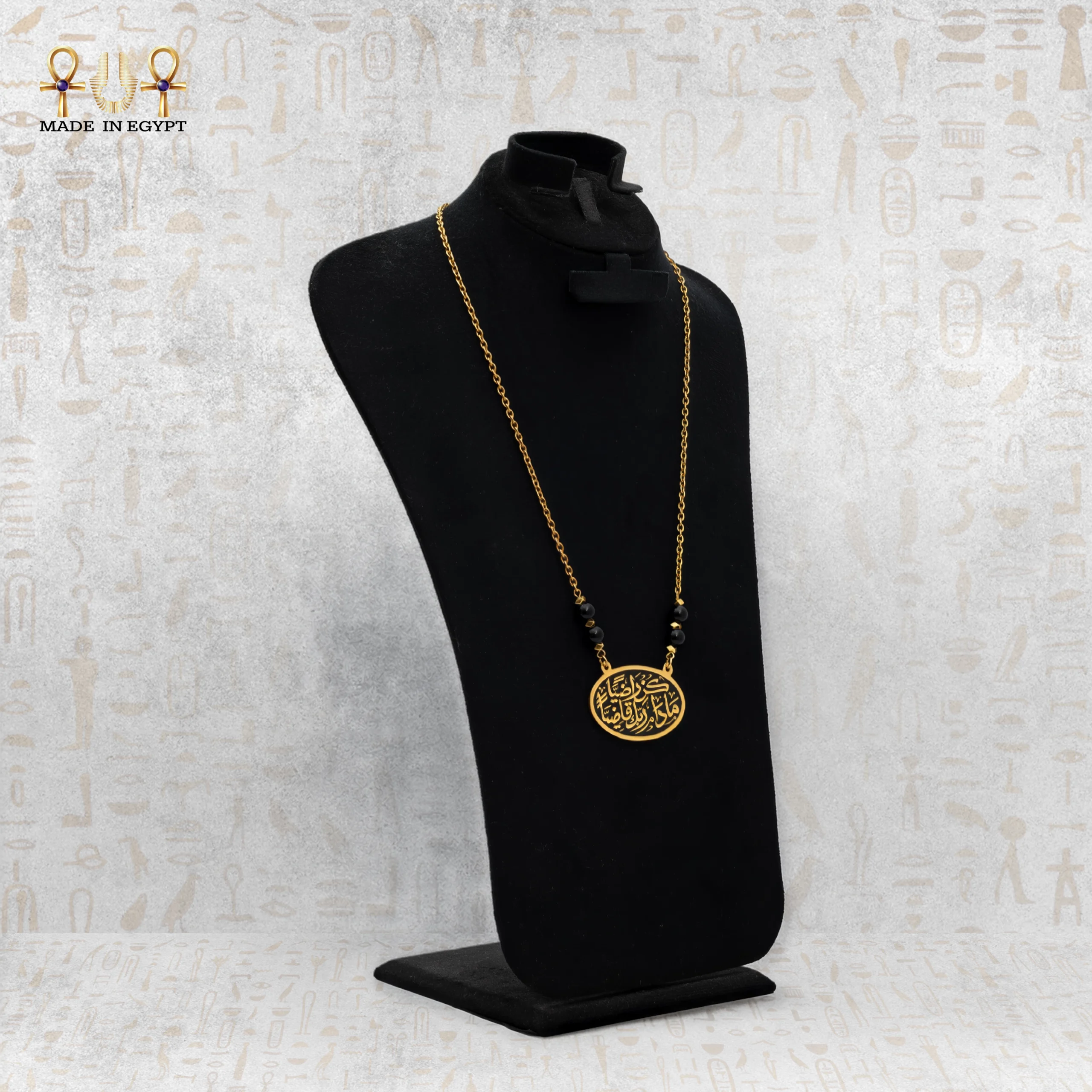 The pendant features premium gold-plated brass, engraved with flowing Arabic calligraphy that feels alive, warm, and deeply expressive. Moreover, its radiant glow elevates any outfit, transforming the piece into wearable art rather than ordinary jewelry.