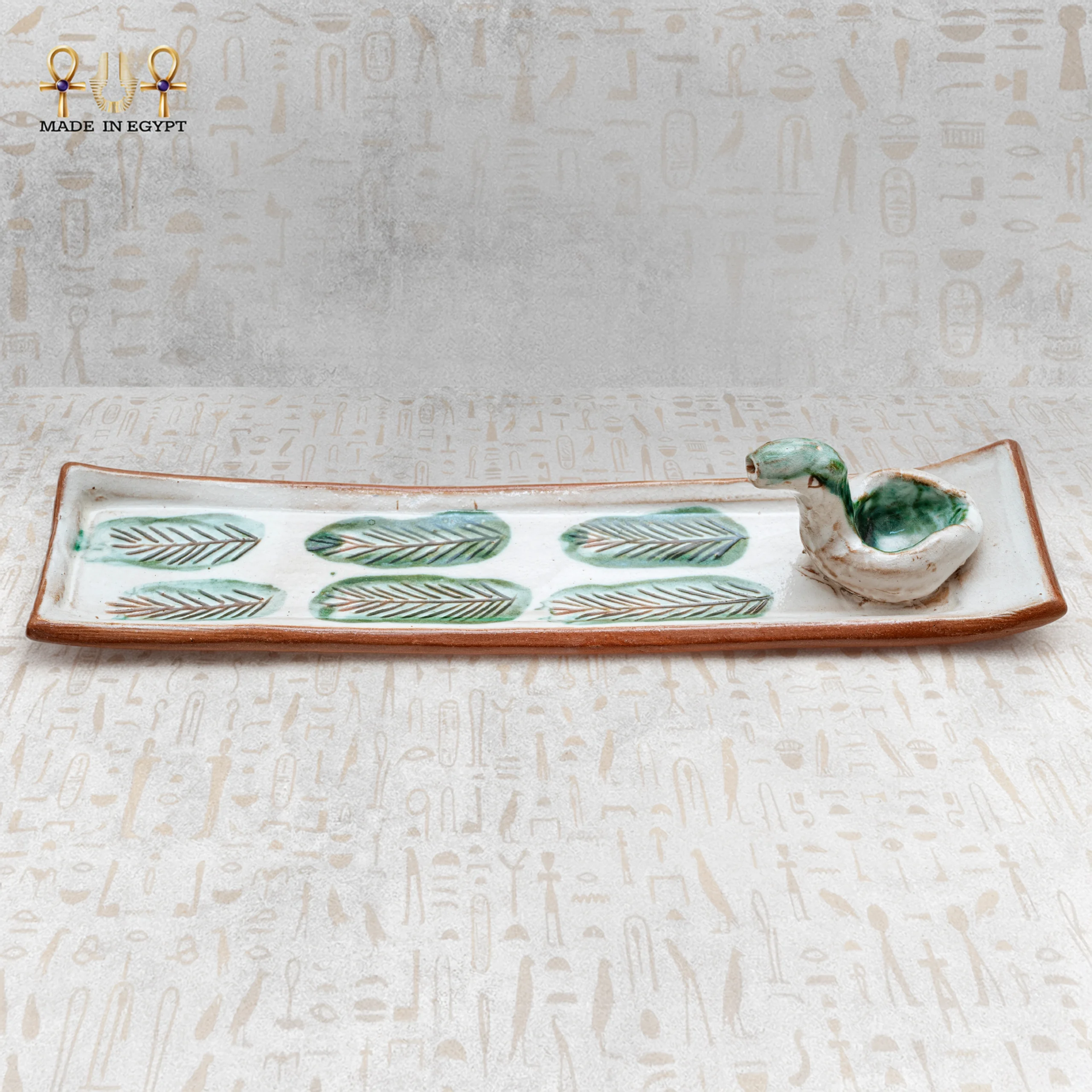 At one end, a delicately sculpted ceramic bird rests gracefully. This charming detail gives the piece personality and visual interest. The bird symbolizes peace and harmony, which enhances the soothing atmosphere created by incense.