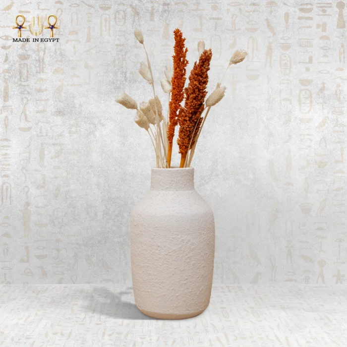 A handcrafted vase set with textured surfaces and earthy Egyptian tones, adding warmth and artistic charm to any space.