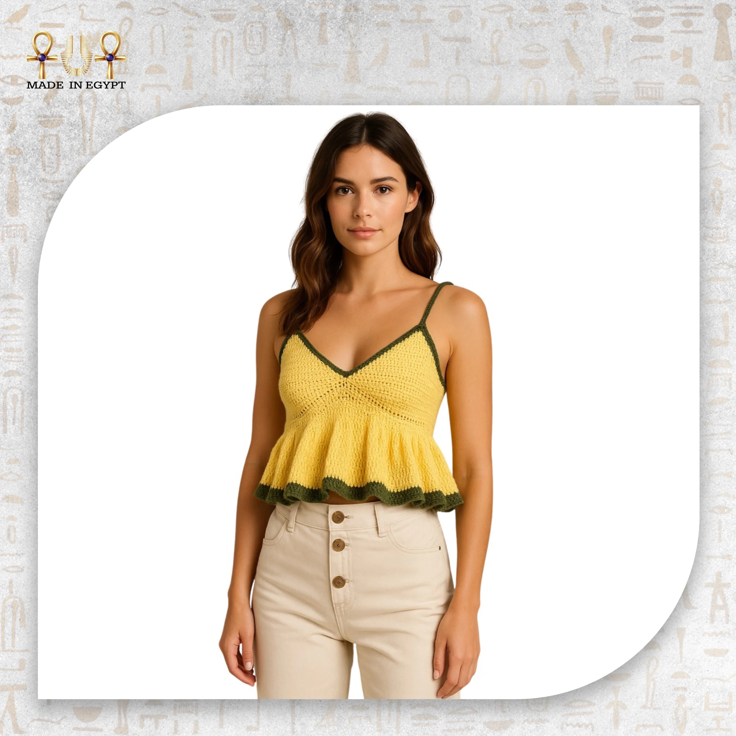 Each Sunny Bloom top reflects the spirit of Egyptian handmade craftsmanship. Its breathable weave makes it perfect for warm weather, while the durable fibers ensure lasting quality. No two pieces are exactly alike, as every stitch embodies the care and creativity of its maker.