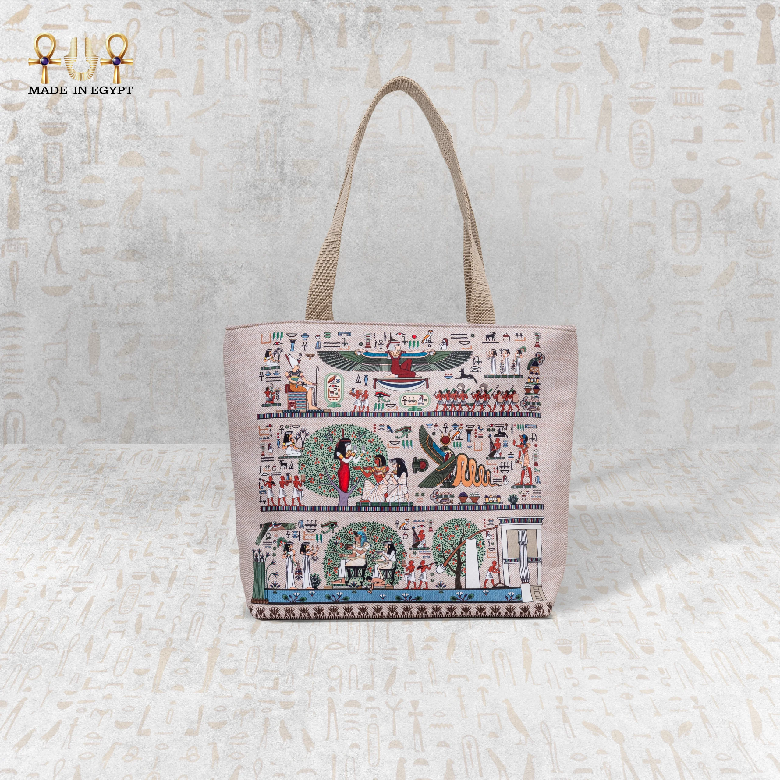 Artistic tote inspired by Ancient Egyptian civilization, combining heritage, elegance, and practicality.