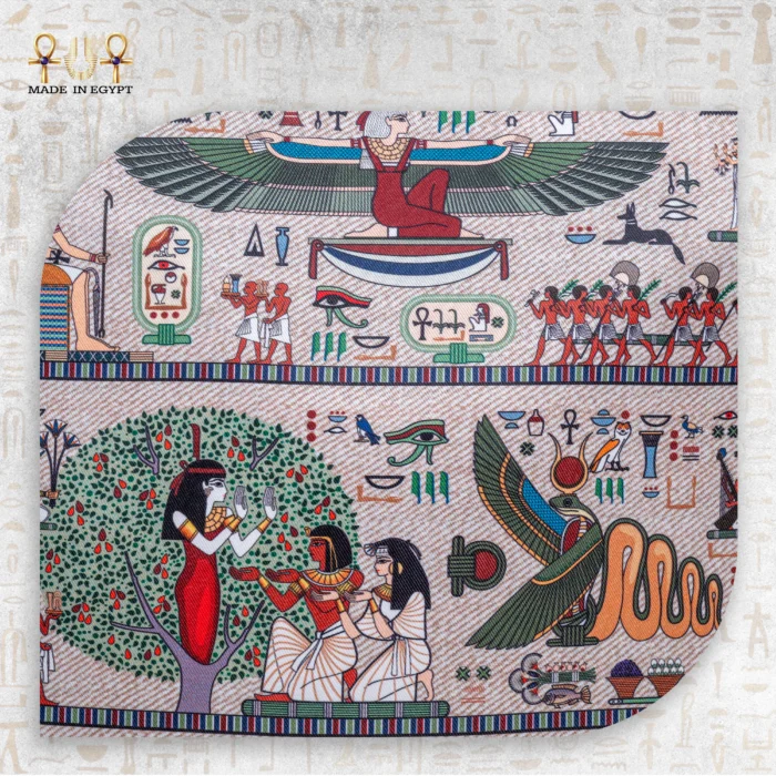 This exquisite bag features detailed artwork that captures life in ancient Egypt. The design includes royal ceremonies, daily activities, and symbolic hieroglyphs, all celebrating the essence of Egyptian culture. It brings history to life in a way that feels personal and wearable.