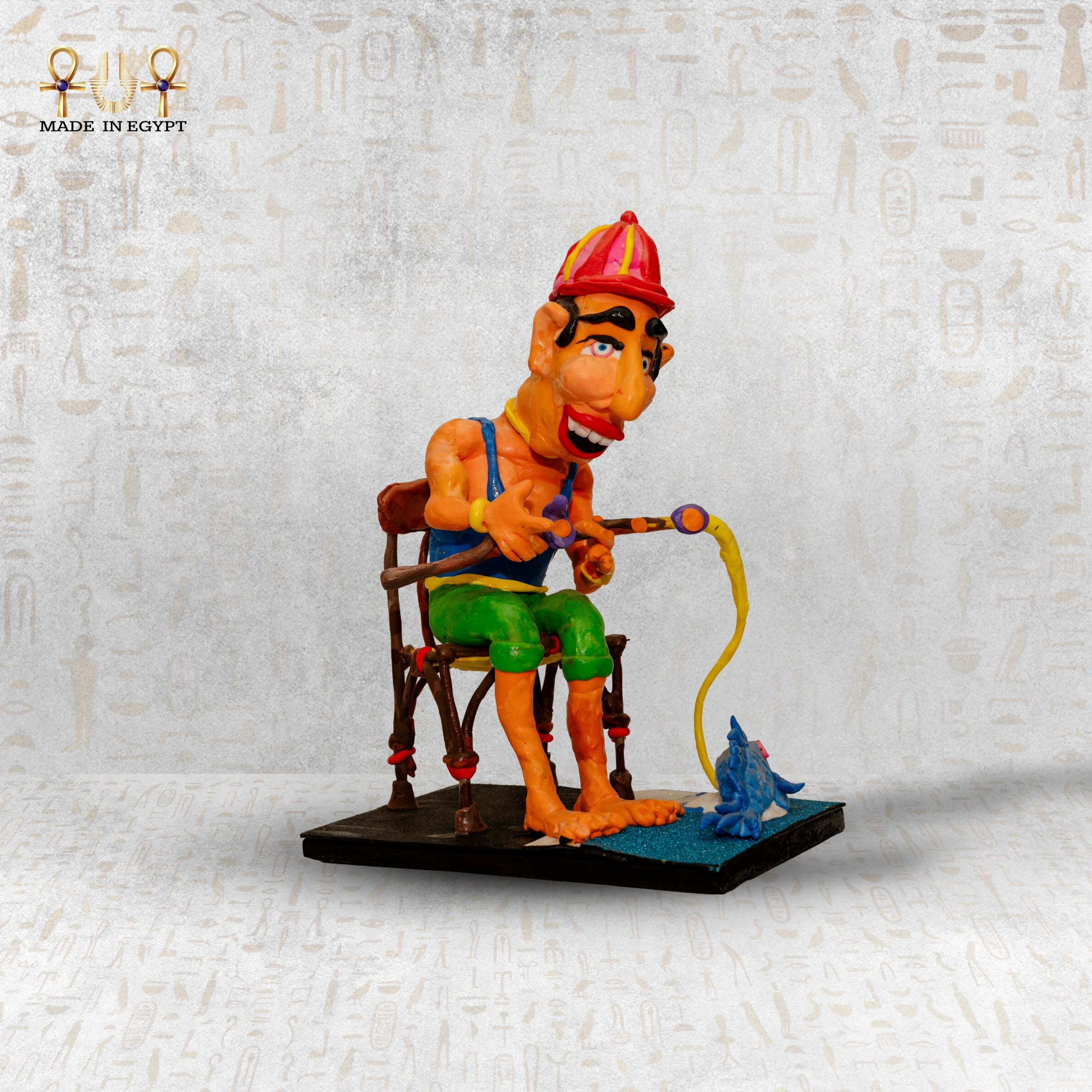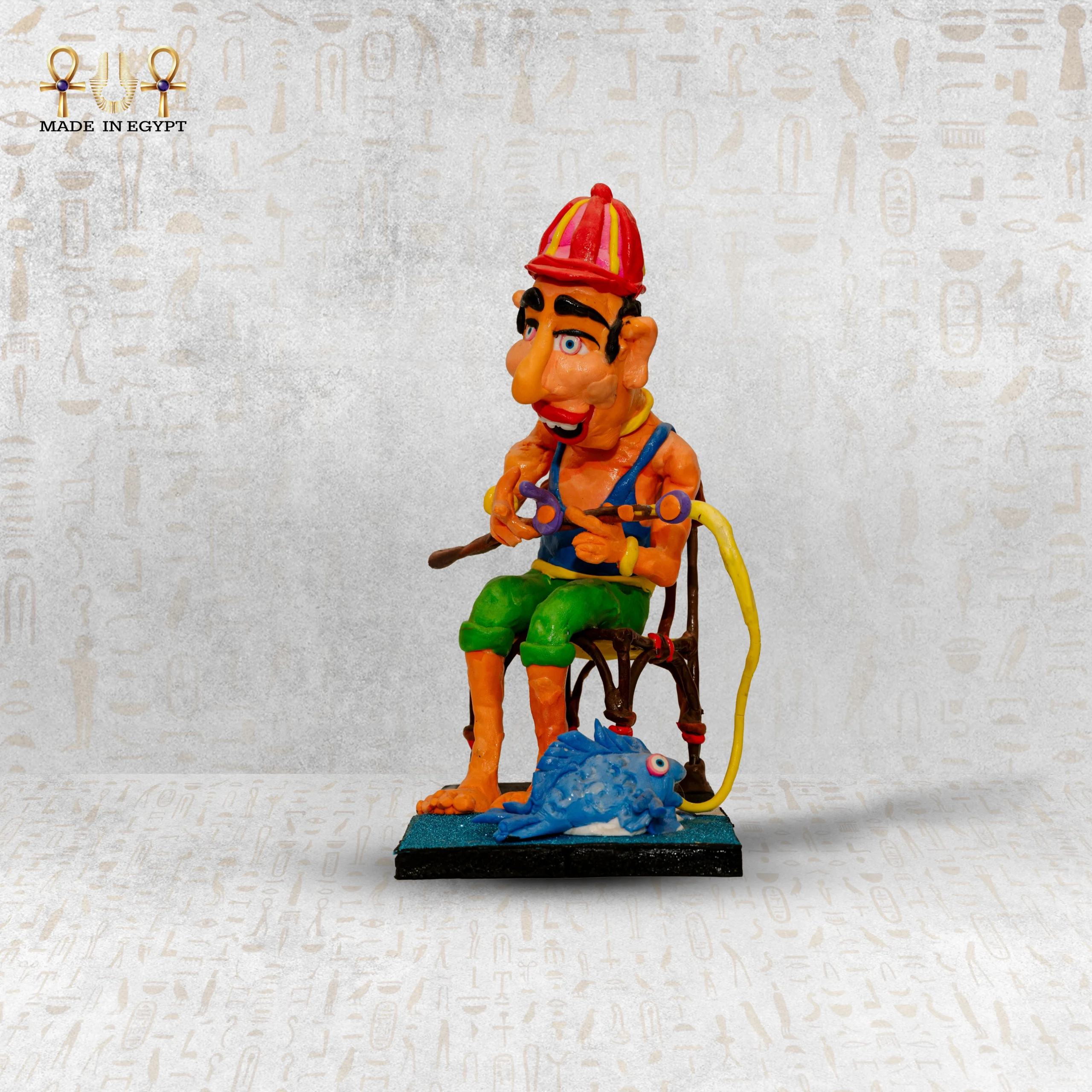 The Fisherman Figurine is a lively handcrafted art piece that captures a playful fishing moment through a humorous and expressive design. From the first glance, The Fisherman Figurine shows a cheerful fisherman sitting on a small chair and holding his fishing rod, while a curious fish appears right in front of him.