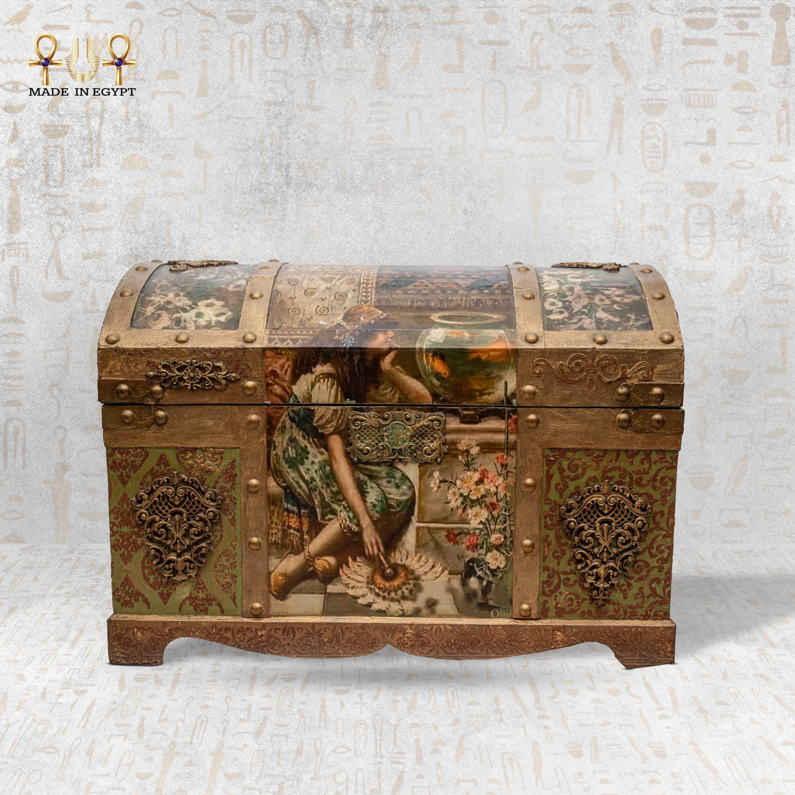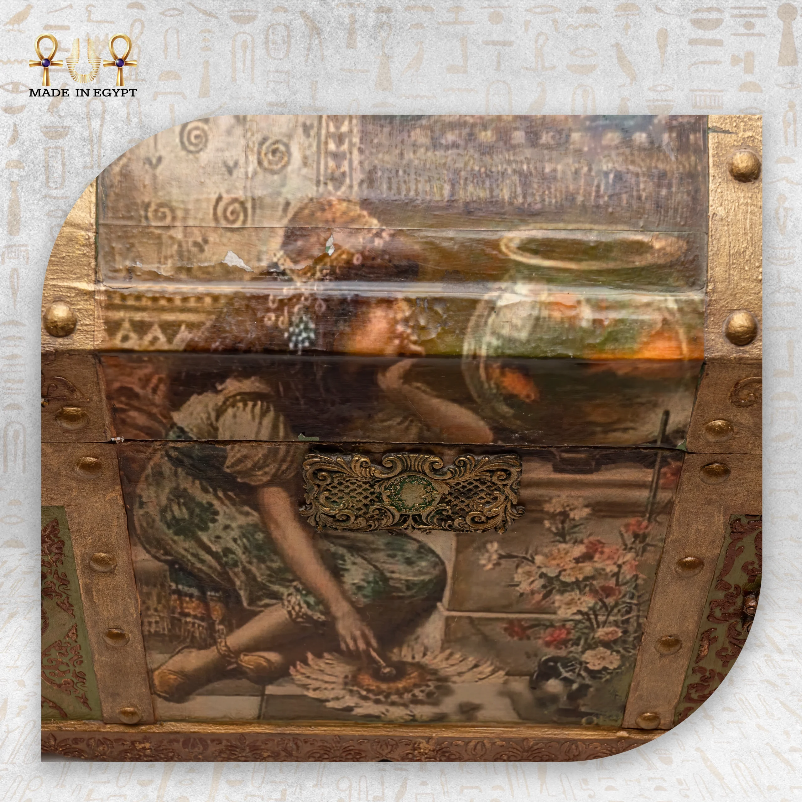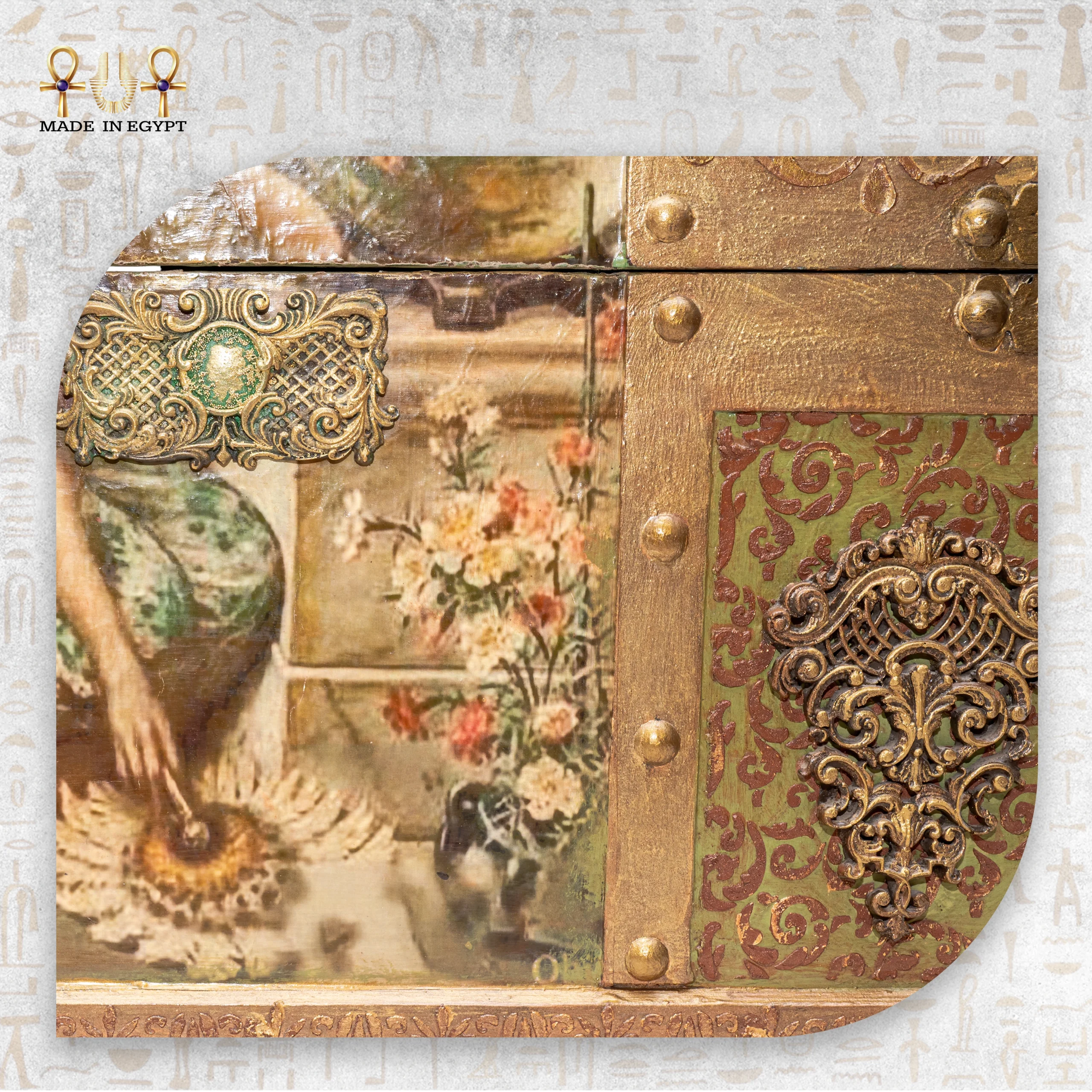 Beyond its visual charm, this chest serves many purposes. You can use it to store jewelry, letters, or cherished keepsakes. It can also stand alone as a statement piece that adds warmth and luxury to any room. In addition, the metallic highlights reflect light beautifully, enhancing carved textures and creating a three-dimensional glow. Each chest carries its own subtle variations, ensuring every piece remains one-of-a-kind.