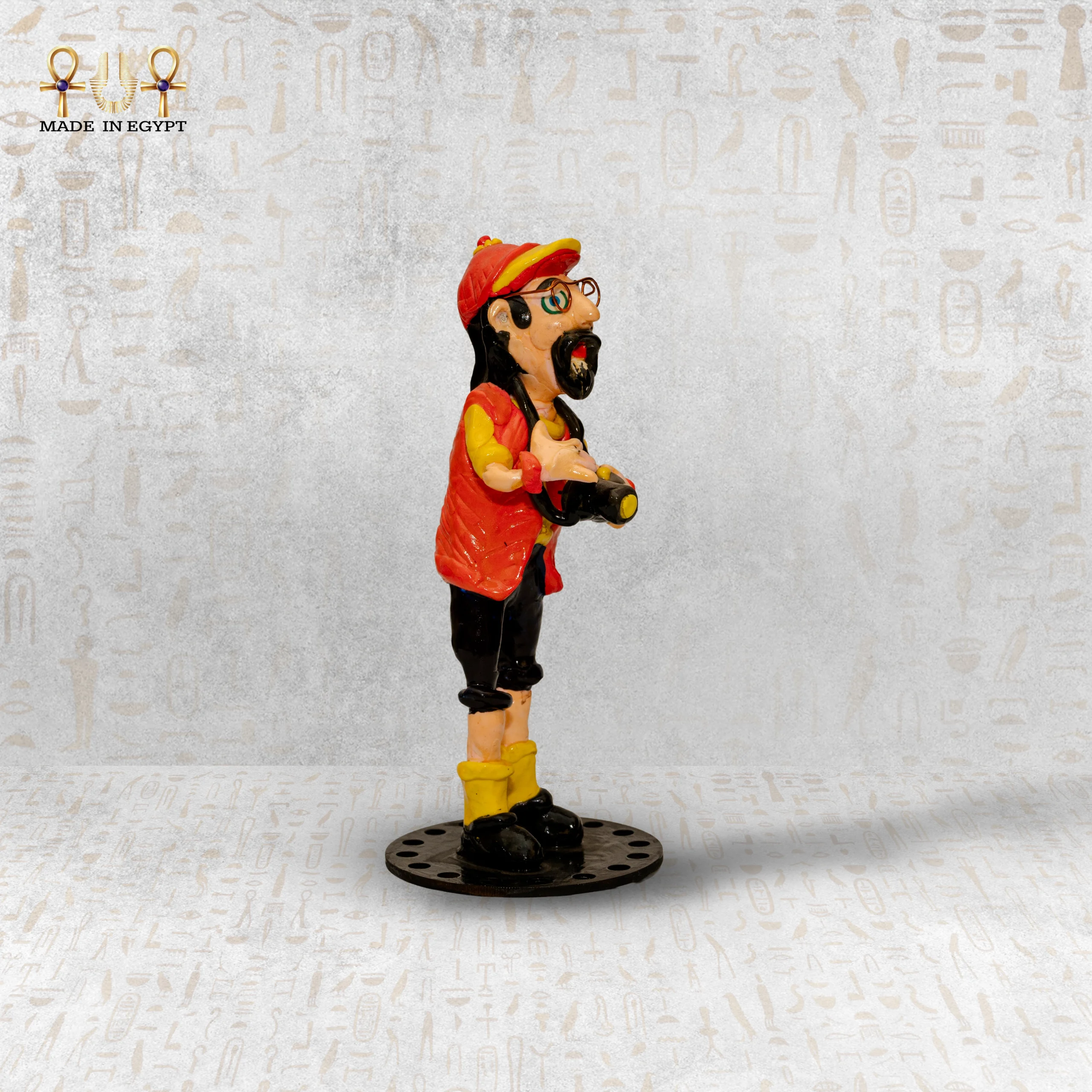 The Tourist with Camera Figurine is a lively handcrafted piece that captures the spirit of travel, curiosity, and adventure.