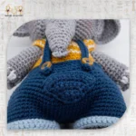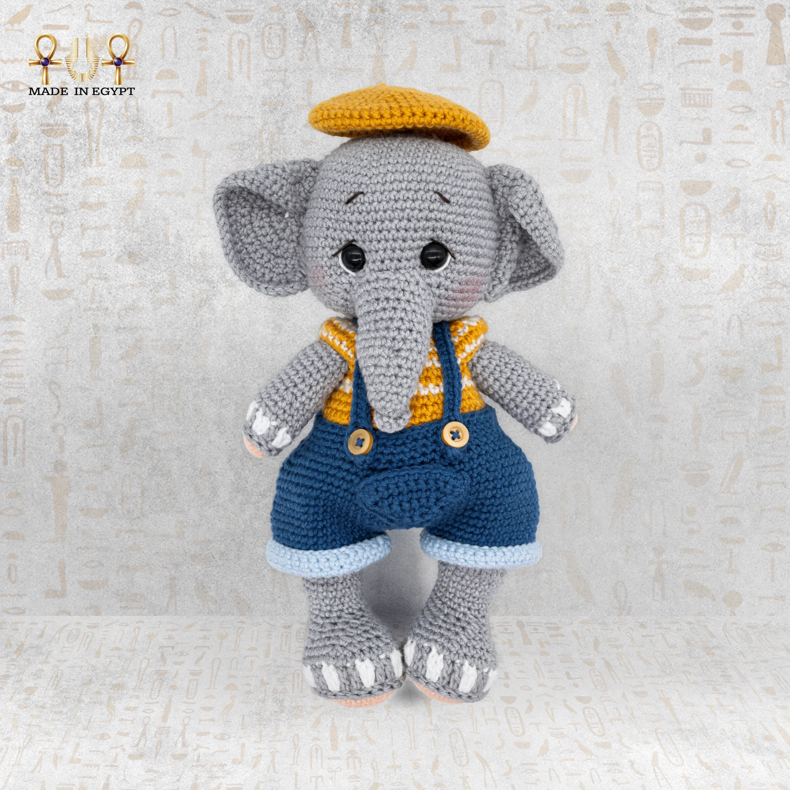 The Tiny Tusk the Elephant doll is a handmade crochet creation that perfectly blends beauty, warmth, and innocence. Crafted from natural cotton threads that are completely safe for children, it features a soft, cuddly texture and a charming design of a friendly elephant wearing a yellow hat and blue overalls with tiny wooden buttons — a touch that combines elegance with simplicity.