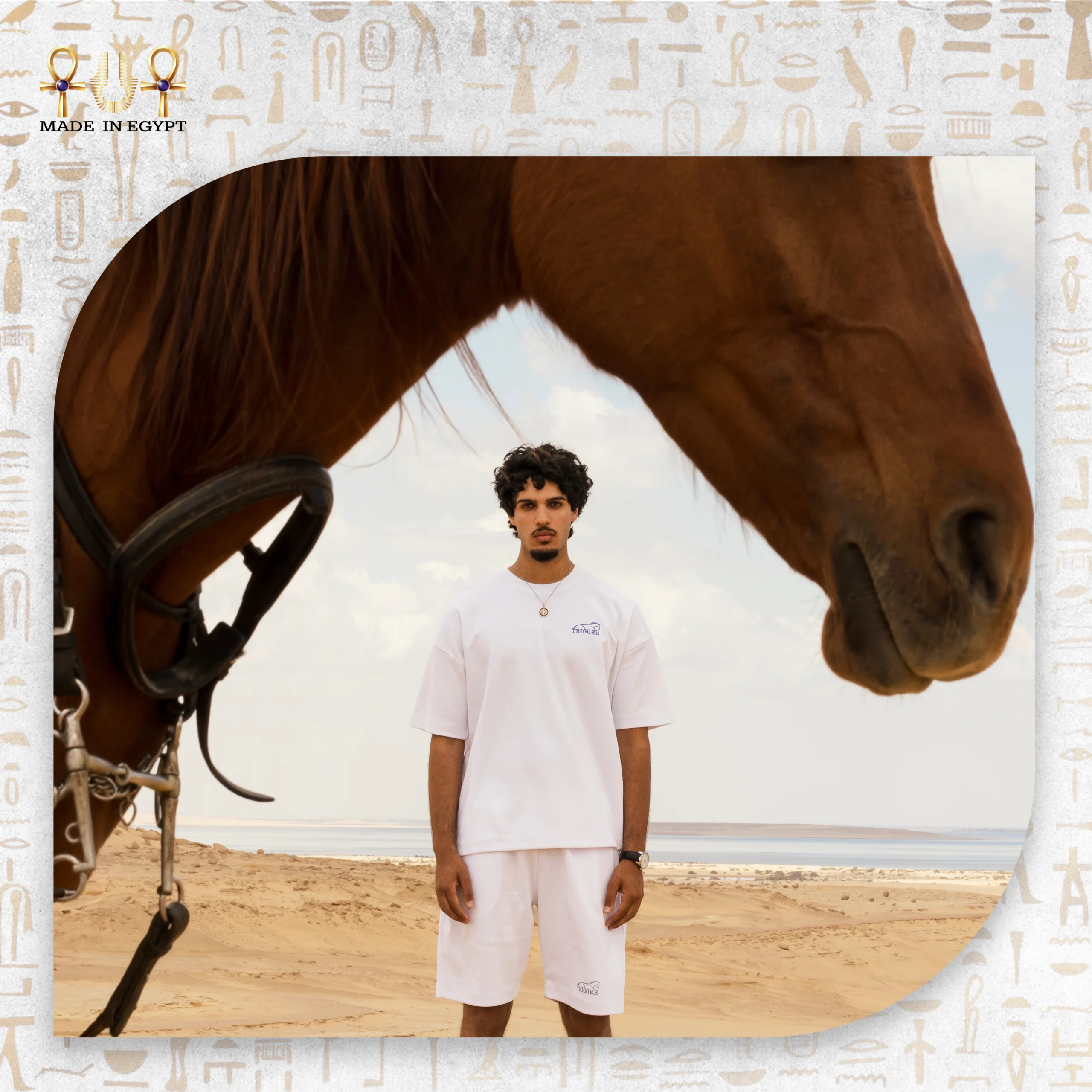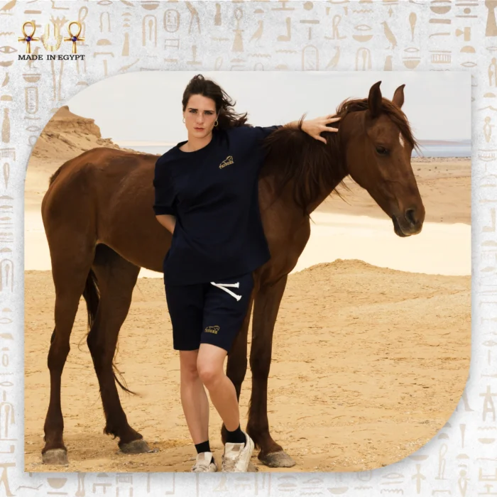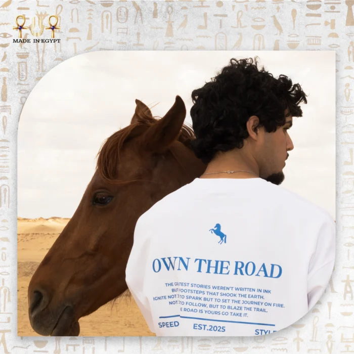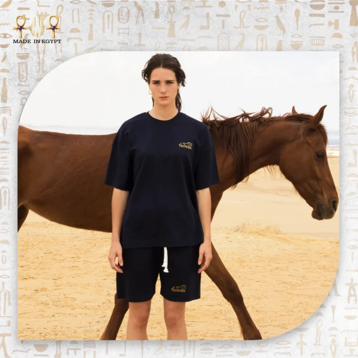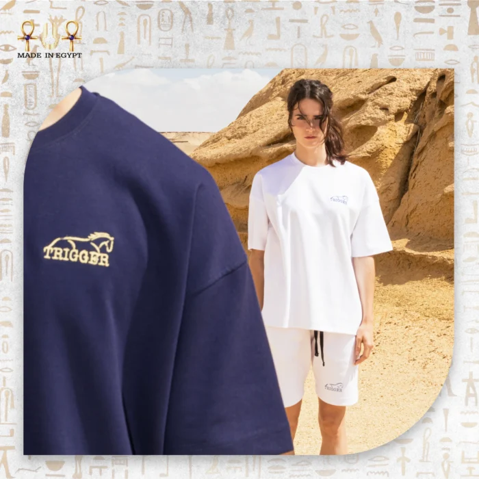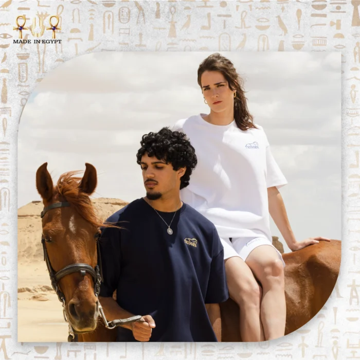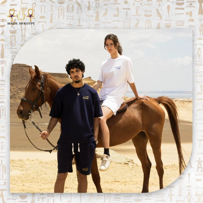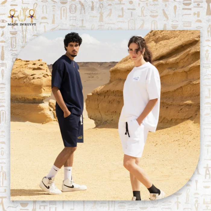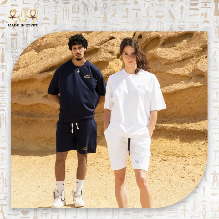 Inspired by Egypt’s serene natural landscapes, the color palette blends calmness and strength — pure white reflects simplicity, while deep navy conveys confidence. The design follows a unisex fit, ensuring it suits people of all genders who appreciate versatile fashion rooted in authenticity and comfort.