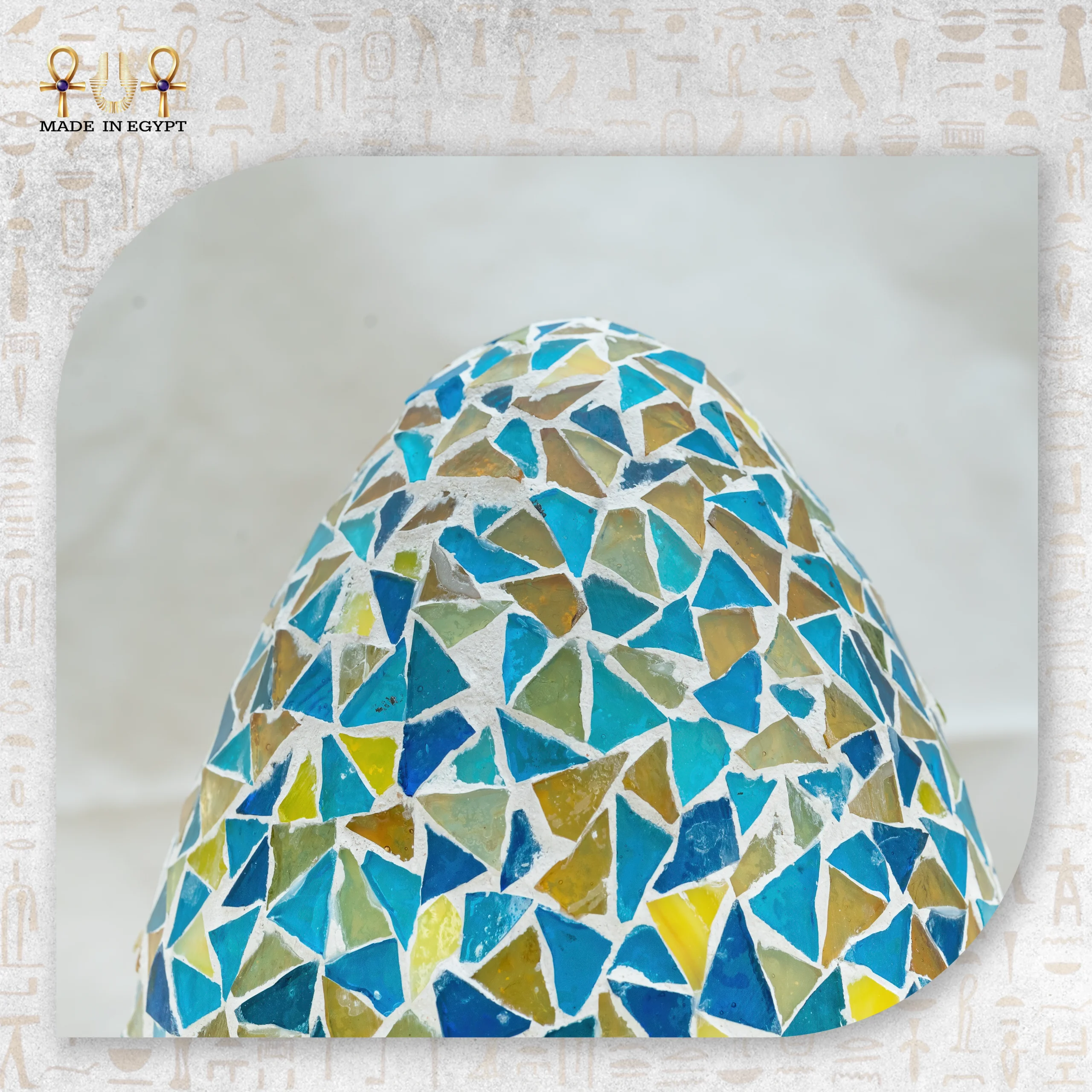 Skilled artisans craft this lamp using small mosaic glass pieces. They carefully place every piece to form a balanced and eye-catching pattern. The blended colors reflect light softly and create a gentle, warm glow across nearby walls and surfaces.