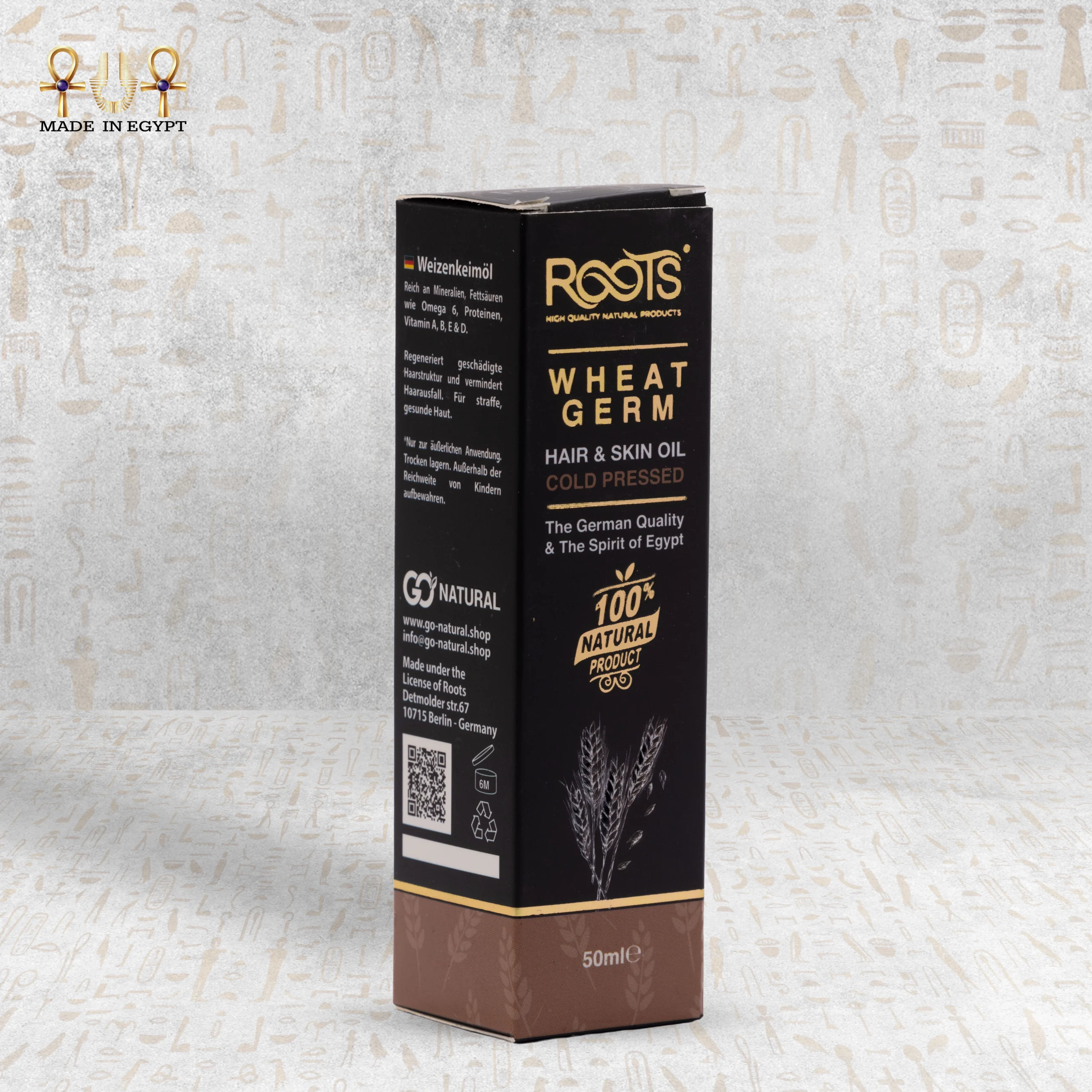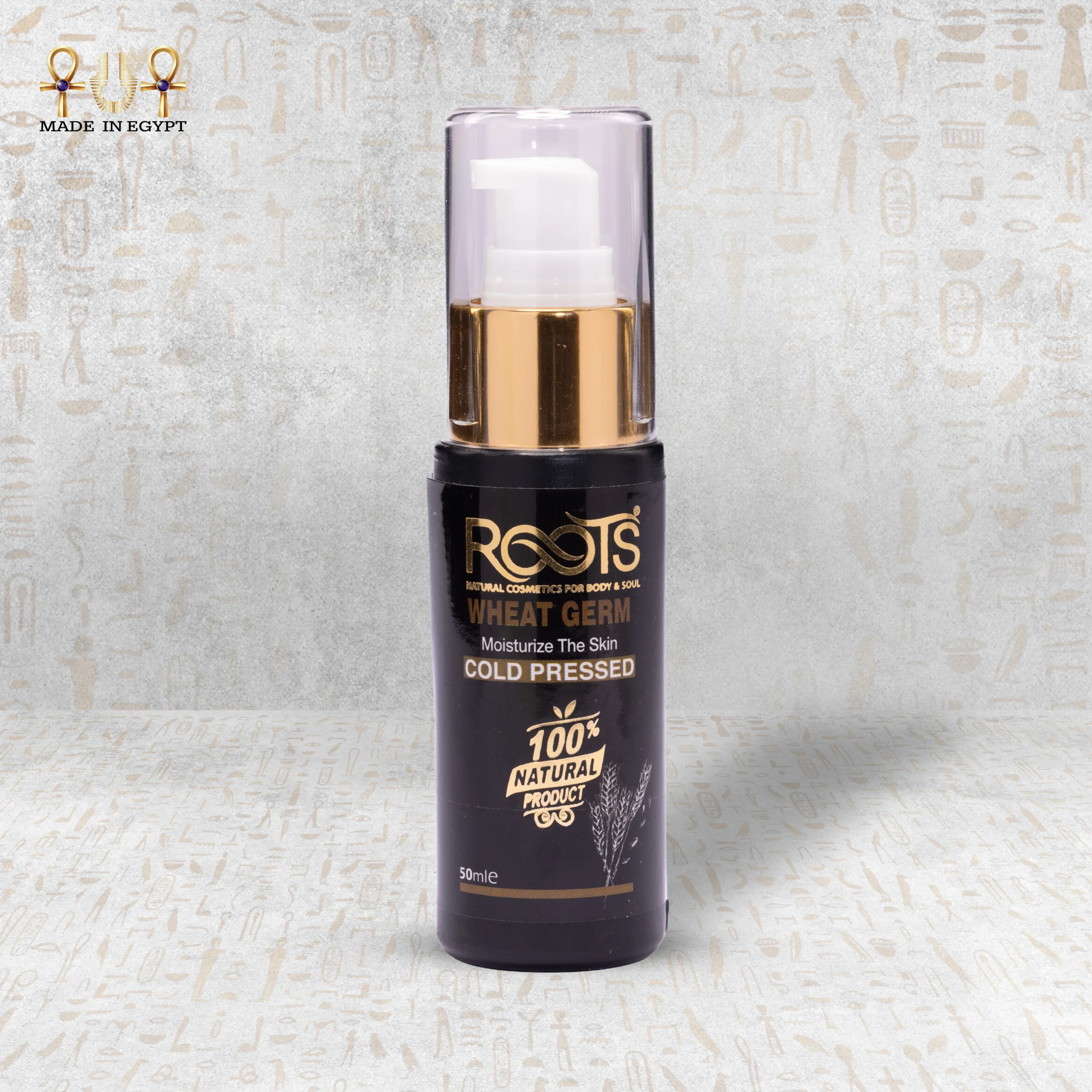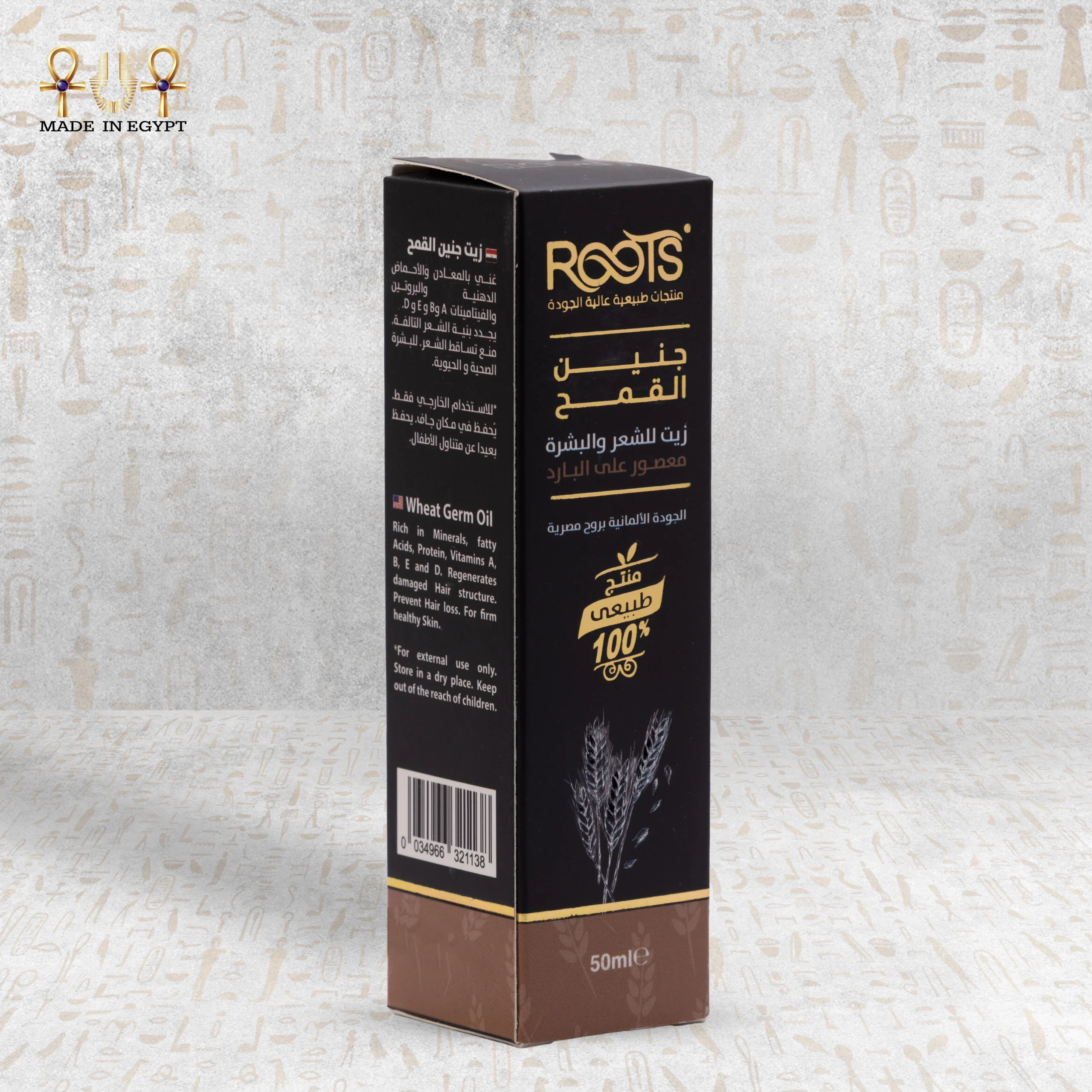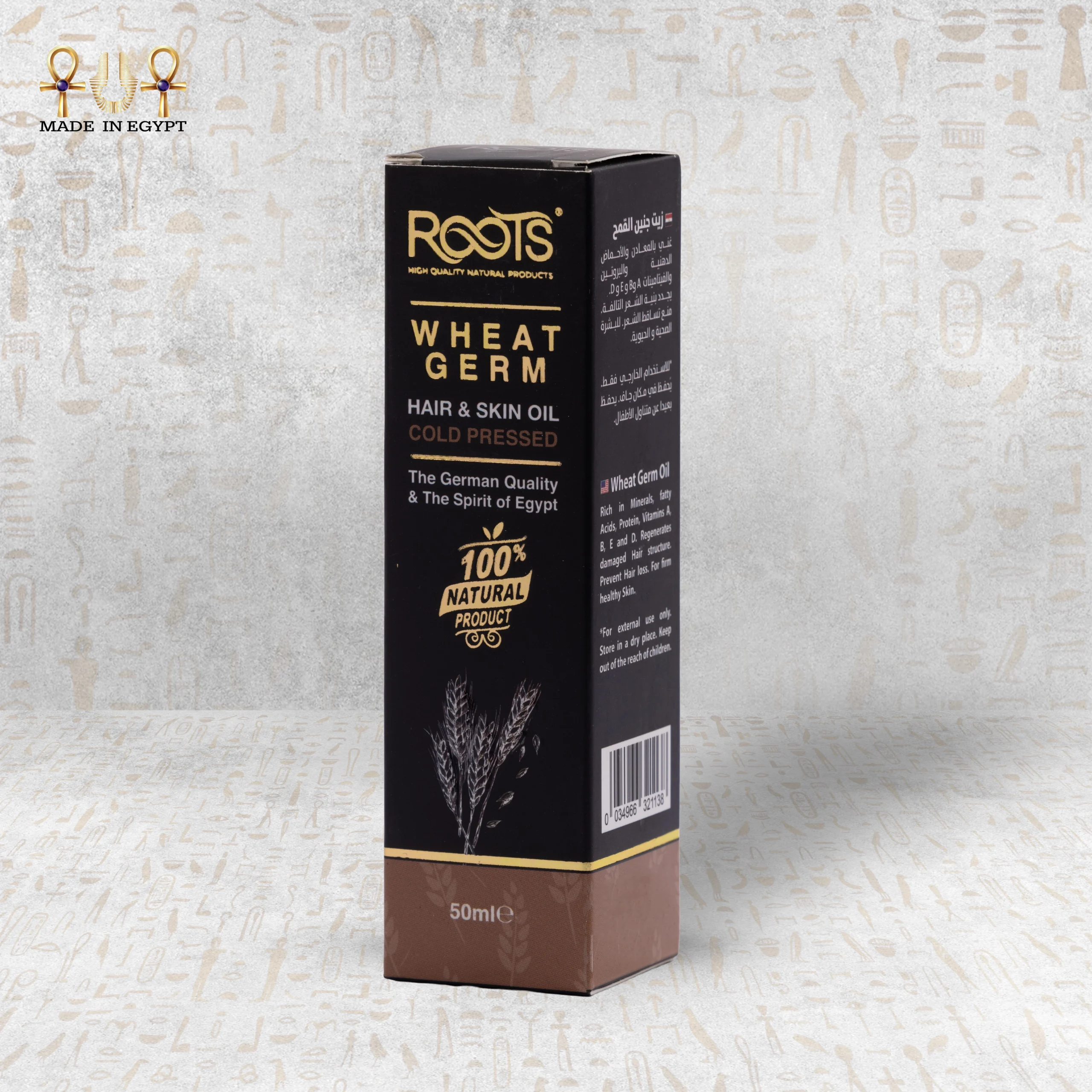 Roots Natural Wheat Oil delivers intense nourishment for both skin and hair. Cold pressing extracts the oil from the wheat germ and preserves its full nutritional value. It contains magnesium, zinc, potassium, and phosphorus. It also provides Vitamins E, B-complex, and folate, which support healthy skin and strong hair.