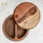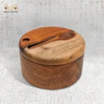 Wooden Dual Section Jar with Spoon – Handcrafted Egyptian Design