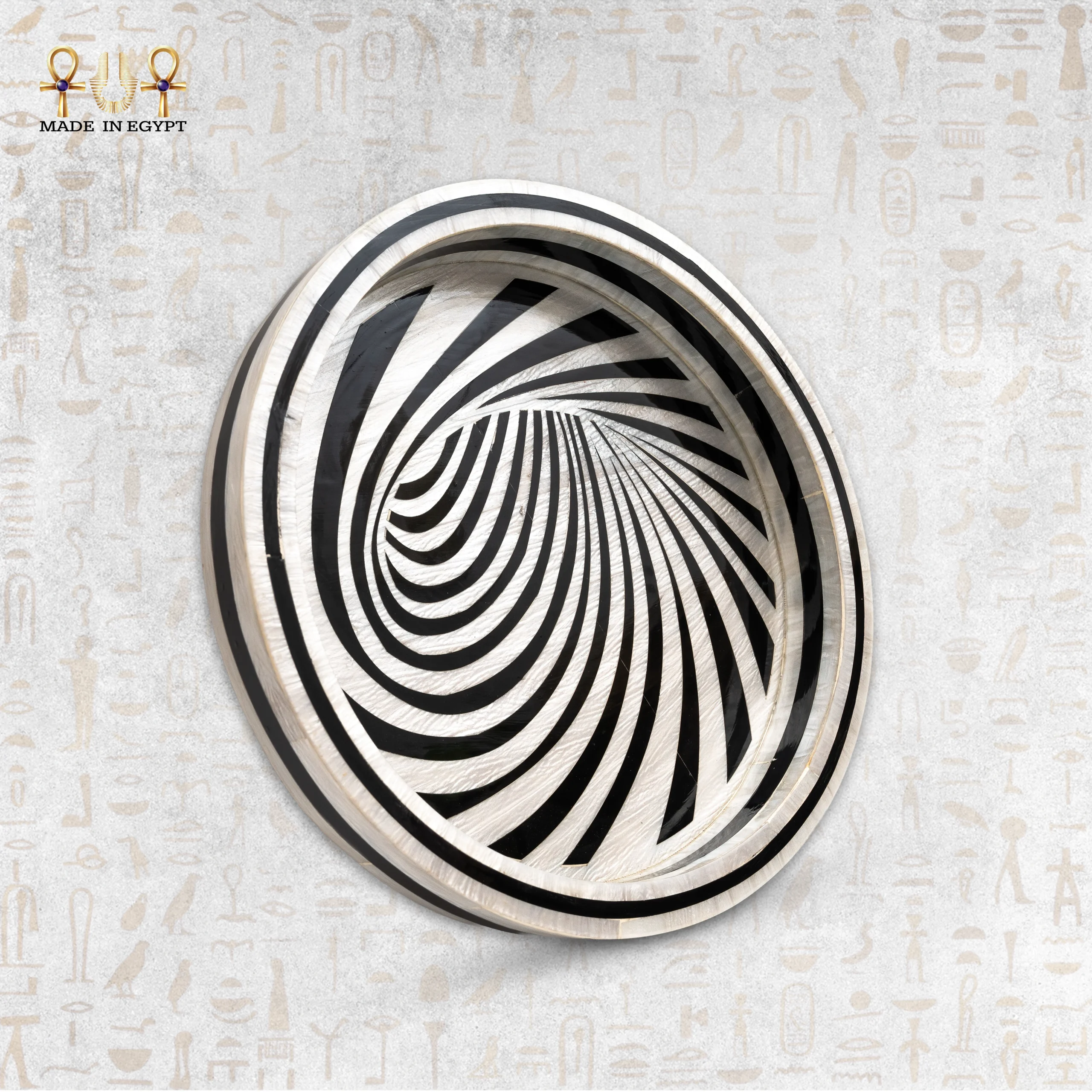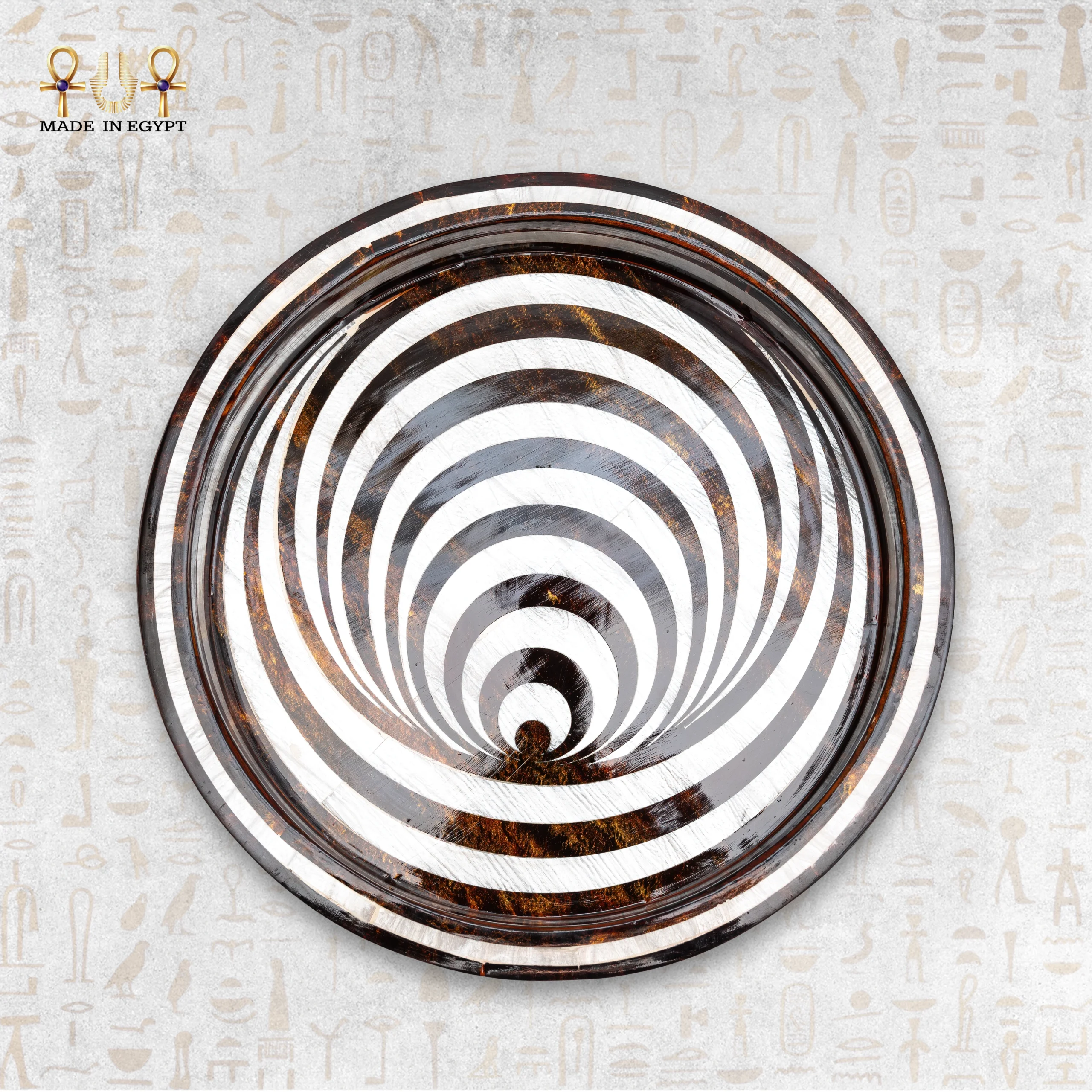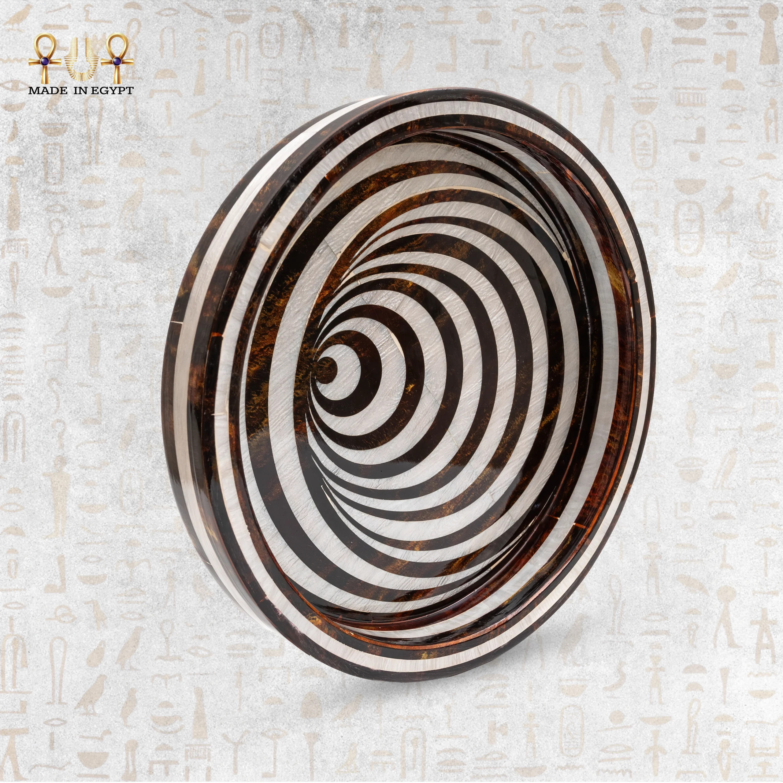 This handmade inlaid wooden serving tray is a refined piece that blends elegance with functionality. Crafted from high-quality natural wood, each tray undergoes detailed, labor-intensive stages, making every item unique.