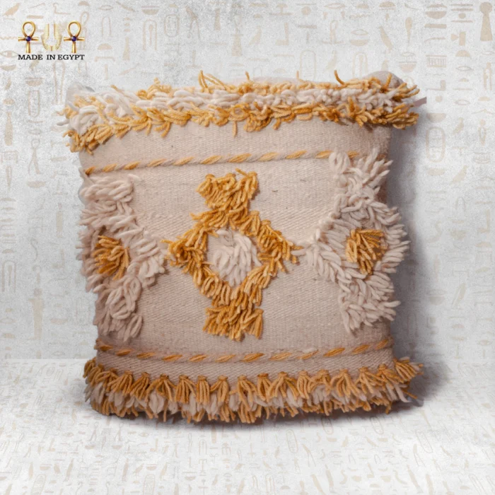 The Wool Glow Cushion captures the warmth of sunlight in every thread. It fills your home with comfort, light, and an authentic Egyptian spirit.