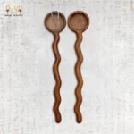 The Zigzag Wooden Serving Set is a stunning fusion of creativity and craftsmanship. Handcrafted from high-quality natural wood, it combines functionality with artistic design. Moreover, its elegant wavy handles make every piece a statement of individuality and refined taste. This unique set elevates dining into an experience of art and authenticity.