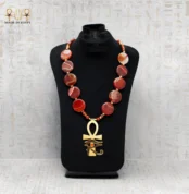 $99.59عقد فاخر من النحاس المطلي ذهب، مُرصّع بأحجار العقيق الطبيعي الأحمر، ويحمل ميدالية العنخ وعين حورس بتصميم فرعوني أصيل يرمز للحماية والطاقة والقوة. قطعة ملكية تضيف لإطلالتك لمسة من سحر الحضارة المصرية القديمة.