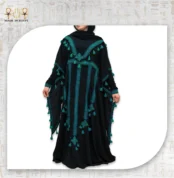 The Oasis Heritage Abaya is an elegant piece inspired by the beauty of oases and authentic heritage. Designed in classic black, it features delicate hand embroidery in nature-inspired shades such as green and turquoise, with tassel details that add a touch of luxury and soft movement. With its loose, comfortable fit and lightweight fabric, it is suitable for both everyday wear and special occasions—perfect for women seeking elegance, comfort, and a timeless heritage touch.