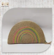 $38.56A semi-circle straw clutch with colorful rainbow stitching—lightweight, practical, and perfect for daily and summer outings.