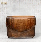 A genuine leather bag with hand-engraved pharaonic and hieroglyphic motifs, featuring rust-proof gold hardware and premium handmade stitching. A luxurious piece inspired by Ancient Egyptian heritage.