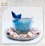 Ocean Magic Decorative Cup is a decorative artistic piece inspired by the beauty of the sea, featuring a transparent design with blue shades and accompanied by a saucer decorated with natural seashells, adding a calm and elegant touch to any space.