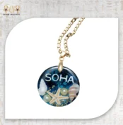 $38.76An elegant resin necklace decorated with a starfish and natural seashells, featuring a customizable name inside the design for a unique ocean-inspired accessory.