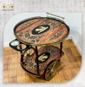 $682.06A luxurious serving cart made of paneh wood, decorated with marquetry and brass inlays, coated with water-resistant resin and designed for smooth mobility—elegance meets functionality.
