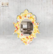 $56.70A handcrafted sun-inspired mirror made from MDF wood and hand-colored glass, adding a vibrant artistic touch to any space.