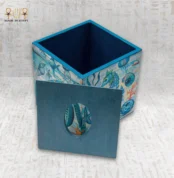 $26.39MDF wooden tea box with a transparent glass lid, divided into 6 equal compartments with adjustable dividers for easy tea organization. Elegant marine-inspired design combining functionality and décor.