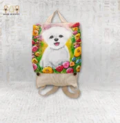$187.22A bag with an artistic design of a cheerful pup surrounded by colorful flowers, adding a touch of joy and vibrancy to your daily look. It takes 7 days to complete.
