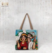 $218.14A unique canvas bag with an artistic design reflecting Egyptian folk heritage, featuring two characters representing traditional brides. It takes a week to complete.