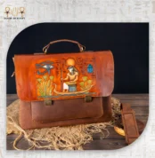 $530.51شنطة لابتوب فاخرة من جلد طبيعي مشغولة يدويًا بنقوش رع الفرعونية.