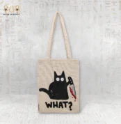 $38.76A hand-painted canvas tote bag featuring a mischievous cat design with a playful and bold character.