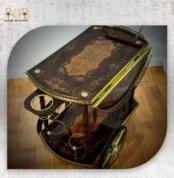 $682.06A baroque-style luxury serving cart crafted from paneh wood and marquetry, enhanced with brass details and a water-resistant resin finish, designed for elegant mobility.