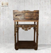 The Royal Coffee Corner is a handcrafted wooden piece that blends beauty with function, inspired by authentic Egyptian artistry. It features a top surface for arranging coffee essentials like pots and cups, along with two extra shelves for storage or décor. Its antique wooden tone and golden details bring a warm, luxurious touch to any space, making it the perfect corner for preparing coffee and unwinding.