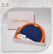 $38.56A handcrafted half-moon bag in deep navy with a bold orange accent — where elegance meets refined craftsmanship.