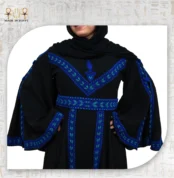 The Spirit of the Nile Abaya blends classic elegance with authentic heritage charm, featuring a refined black design adorned with hand embroidery in deep blue and turquoise shades inspired by the beauty of the Nile. It offers a comfortable, flowing silhouette with V-shaped embroidery that highlights the design, along with wide sleeves that add a touch of luxury and ease of movement. Crafted from a soft, lightweight fabric suitable for everyday wear and special occasions, it is an ideal choice for women seeking distinction and elegance with a true Egyptian spirit.