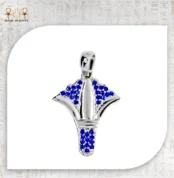 A silver-plated pendant inspired by the Egyptian lotus flower, adorned with blue stones symbolizing purity, renewal, and timeless elegance.