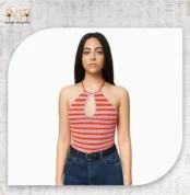$166.60A handmade crochet halter top featuring red and light purple stripes with a stylish front cutout. Crafted from soft cotton yarns, it’s perfect for summer looks, festivals, and effortless bohemian vibes.