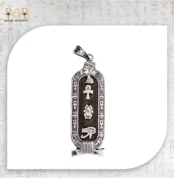 A royal silver cartouche featuring the Ankh, Eye of Horus, and Sacred Scarab — symbols of eternal protection and rebirth.