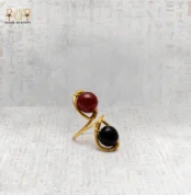 $10.93Handcrafted yellow brass wire ring featuring black and brown agate stones, blending bold contrast with warm natural elegance.