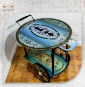 $682.06A luxurious sky-blue serving cart with floral marquetry and brass accents, water-resistant and easy to move—bringing calm elegance to any space.