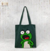 $75.88A hand-painted canvas tote bag featuring a surprised frog with a playful and expressive character.